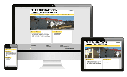 För Fastighets AB Billy Gustafsson tog vi fram en ny och modern webbplats som riktar sig mot både företagets kunder som söker lägenhet samt innehåller väsentlig information för företagets befintliga hyresgäster. Genom Designstugans CMS-lösning baserat på WordPress kan de anställda själva underhålla innehållet och lägga upp ny information.